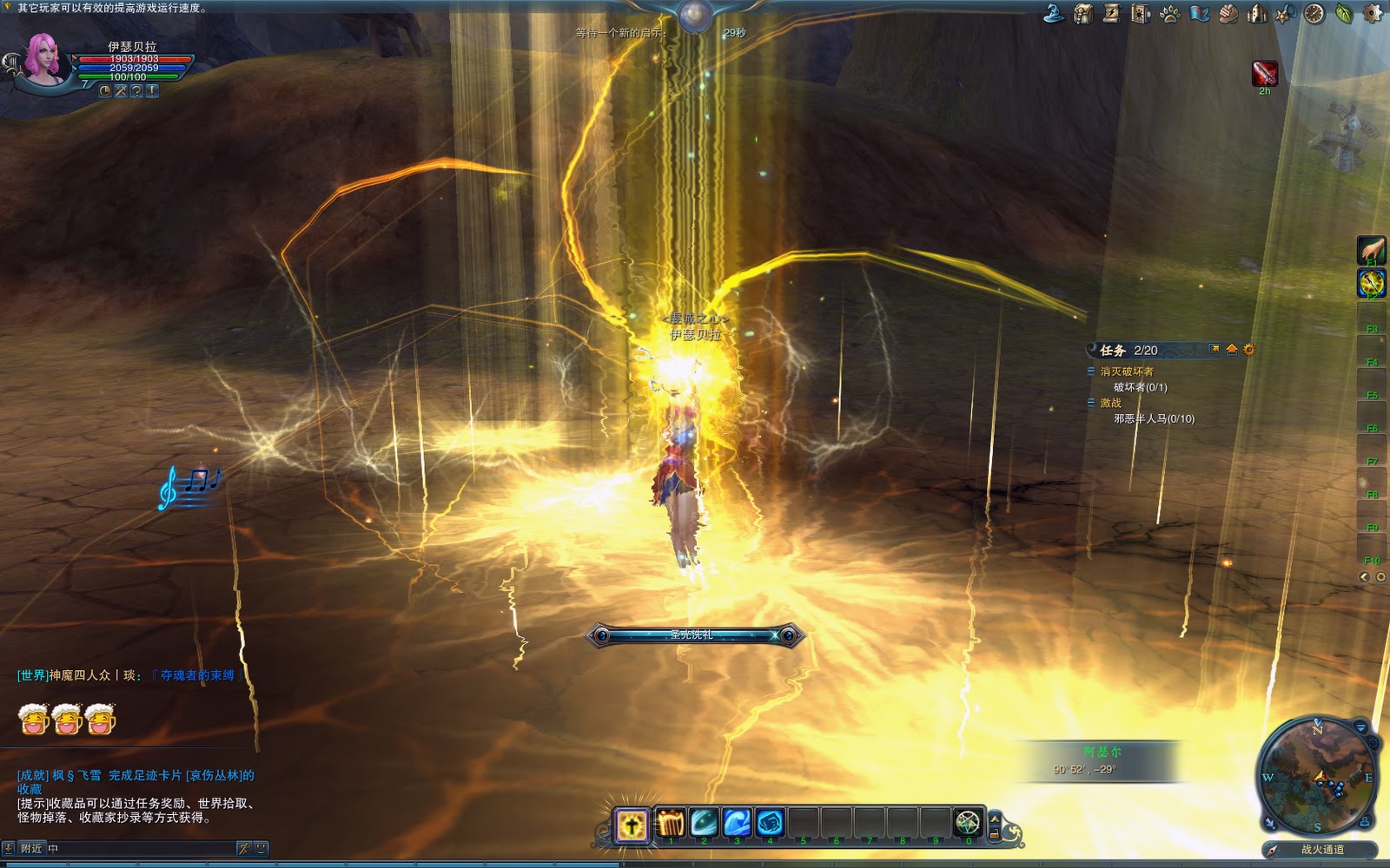 | I will have to explain this screenshot in detail. The green thing being auto-absorbed by my character is actually the Soul Currency. To the lower left, the letters “C” and “D” are triggered by my normal spells. Once I gather 2 “C”s and 1 “D”, the musical bar above will light up (its a skill) automatically and cast a 20sec attack boost buff on me. The letters will be consumed and I can do it again. The letters will disappear if you do not use them in… I think it was 10 seconds. The aura you see around my character will be the attack buff’s graphical effect. |